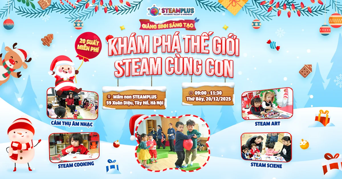 Sáng Thứ Bảy ngày 20/12/2025, không khí Giáng sinh đã ngập tràn khuôn viên rộng 1200m² của Trường Mầm non STEAMPlus Tây Hồ. Sự kiện “Giáng sinh sáng tạo: Khám